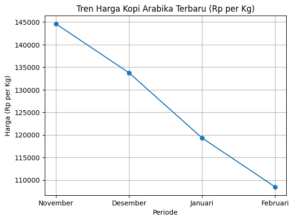 Jika melihat pergerakan dalam beberapa bulan terakhir, harga kopi Arabika mengalami perubahan yang cukup drastis. Pada akhir 2025, harga sempat menyentuh level tinggi di atas USD 4 per pound, atau setara lebih dari Rp140.000/kg.